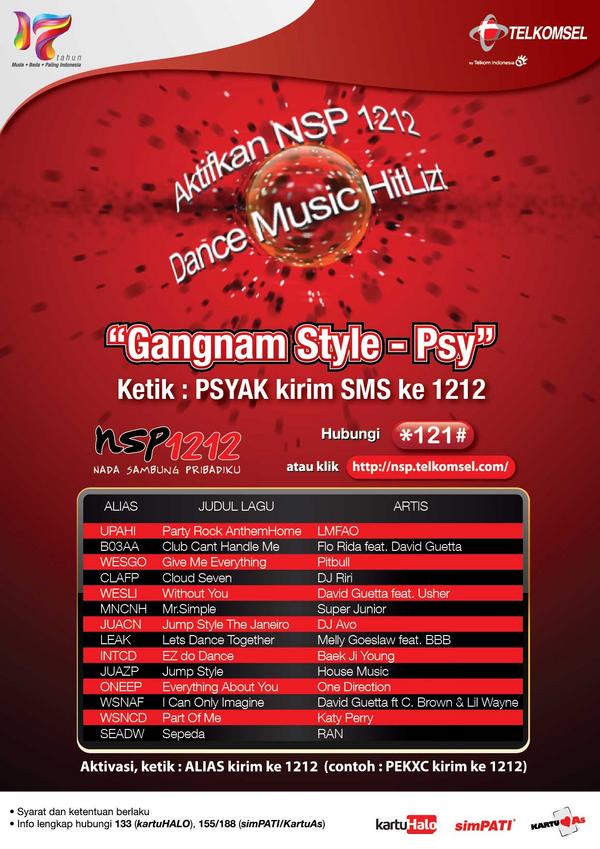 Beberapa NSP Korea yang bisa Anda pilih adalah Super Junior MrSimple Bonamana Sorry Sorry Superman dan Acha Girls Generation My J Snowy Wish Genie MBLAQ Oh Yeah U I Y GOOD Luv 2 PM Hands Up Dont Stop Cant Stop Thanks You dan beberapa. Cara kedua untuk mengaktifkan NSP Telkomsel adalah lewat sms langkahnya pun sangat sederhana saya jelaskan dibawah. RING KETAHUANdan saya kirim ke 1212.